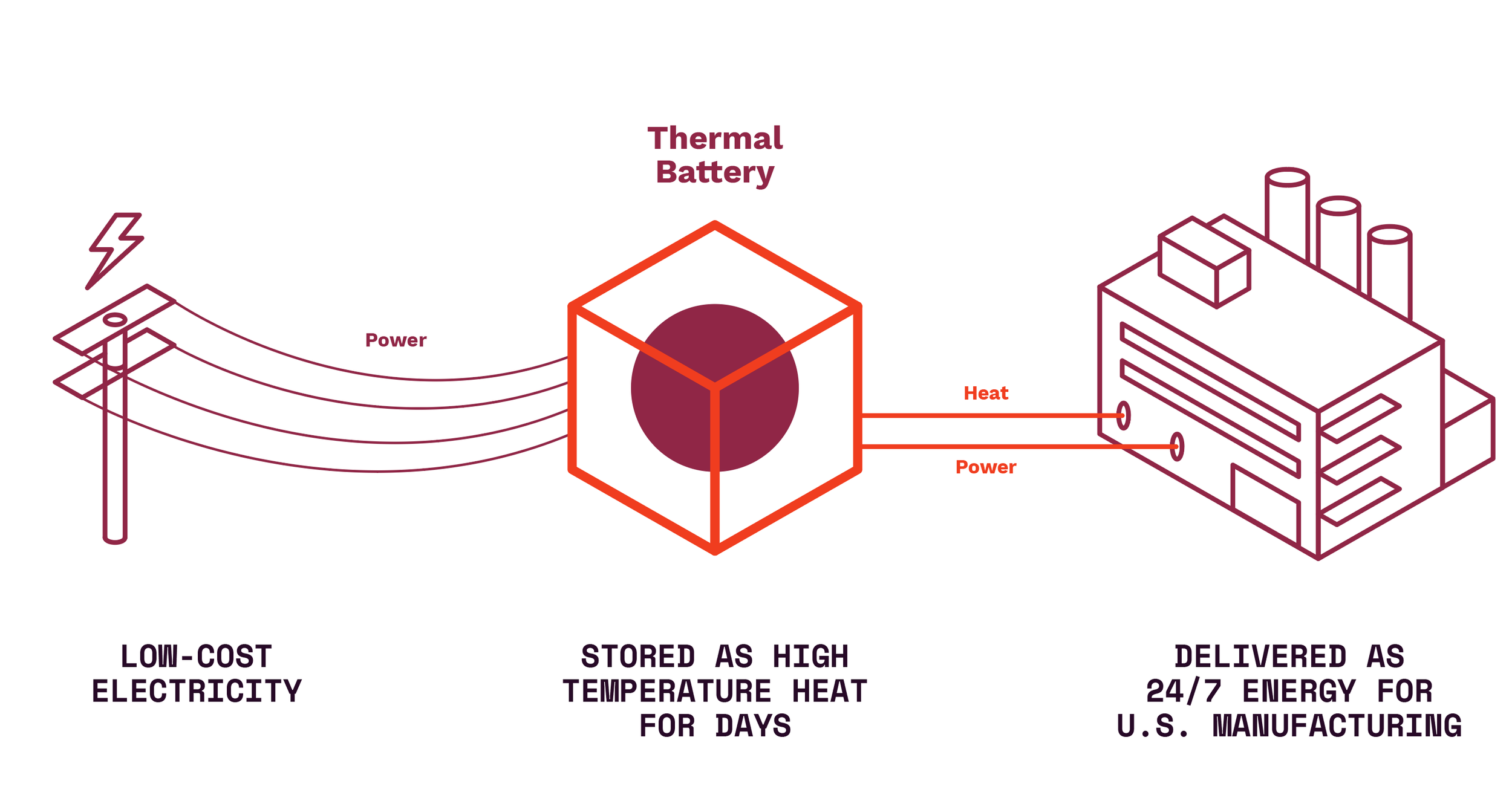 Existing thermal battery technologies store energy at temperatures high enough to address 99% of U.S. industrial heat demand using clean, surplus power.
